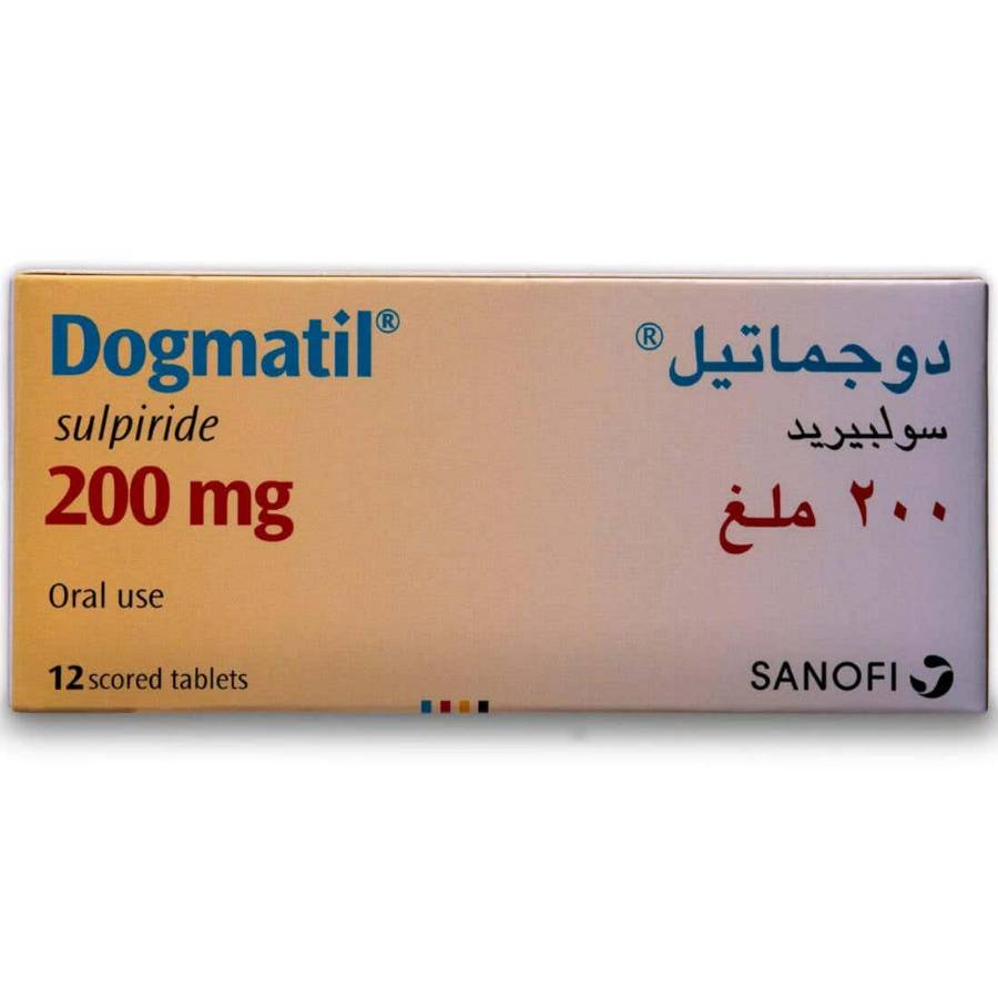 DOGMATIL 200 MG TABLETS contain sulpiride a benzamide antipsychotic used to treat certain types of psychological conditions including anxiety and some forms of depression as well as vertigo. This higher strength is typically used for more severe symptoms or conditions. The box contains 12 tablets.