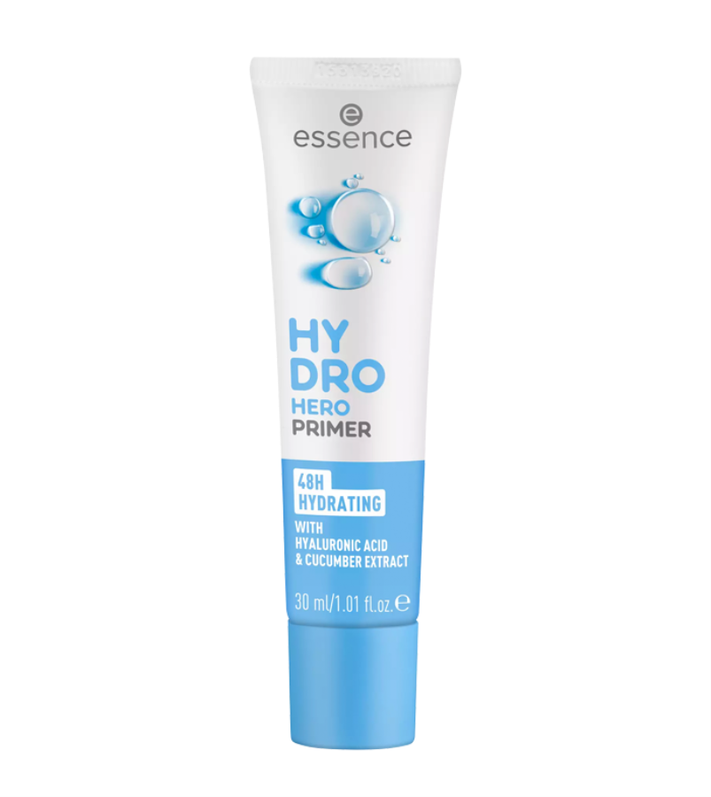 Hydro Hero by essence Hydrating Primer is formulated with hyaluronic acid and cucumber extract. Provides extra hydration to your skin before applying foundation. Its formula is very light and leaves the skin instantly moisturized. Provides extra hydration for up to 48 hours.