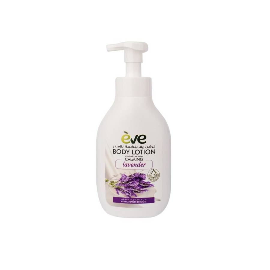 Eve Body Lotion in Calming Lavender available in a large 500 ml bottle. It deeply moisturizes the skin and helps soothe and relax it thanks to the aromatic lavender extract. Leaves skin soft supple and scented with the comforting aroma of lavender.