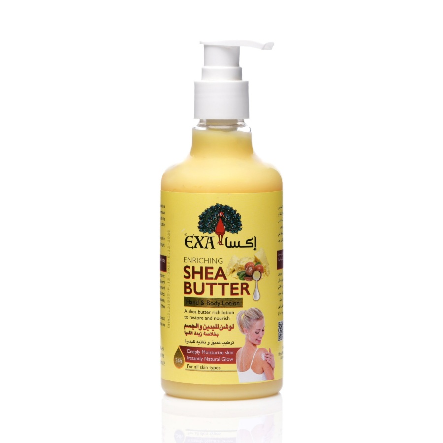 Exa Shea Butter Lotion comes in a 300 ml package in a package containing 48 pieces. Shea butter is a natural moisturizer rich in fats and vitamins that nourish the skin. This lotion provides deep hydration and helps nourish very dry skin restoring its elasticity and softness.