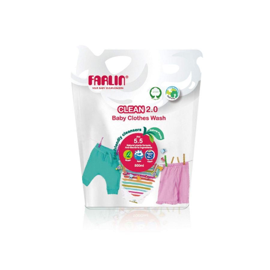 FARLIN Clothing Detergent Refill Pack 800ml. Refill pouch for the Farlin Baby Clothes Wash. Eco-friendlier and cost-effective option.