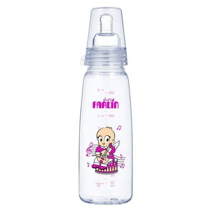 FARLIN Pink Plastic Bottle with Handle 250ml capacity model 7177. Features a handle for easy grip and comes in a pink color. Made from baby-safe plastic.