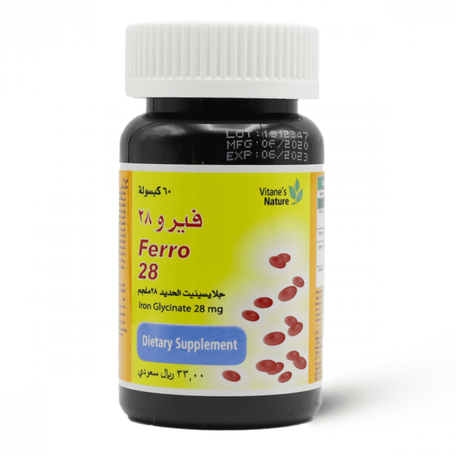 Description: Capsules containing iron to support blood health. Benefits: Treats anemia boosts energy and supports blood health. Usage: Take one capsule daily with meals. Nutritional Content: Iron (28 mg).