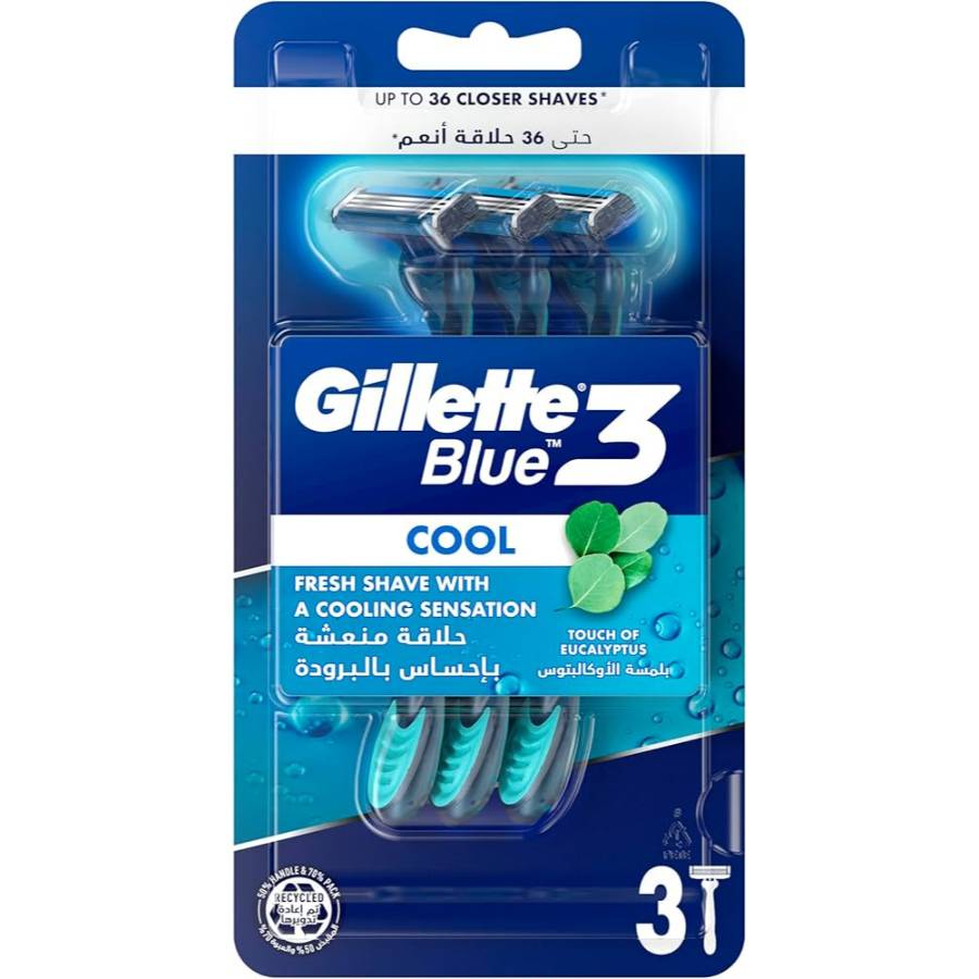 GILLETTE BLUE ICE 3 disposable razors in a bag.