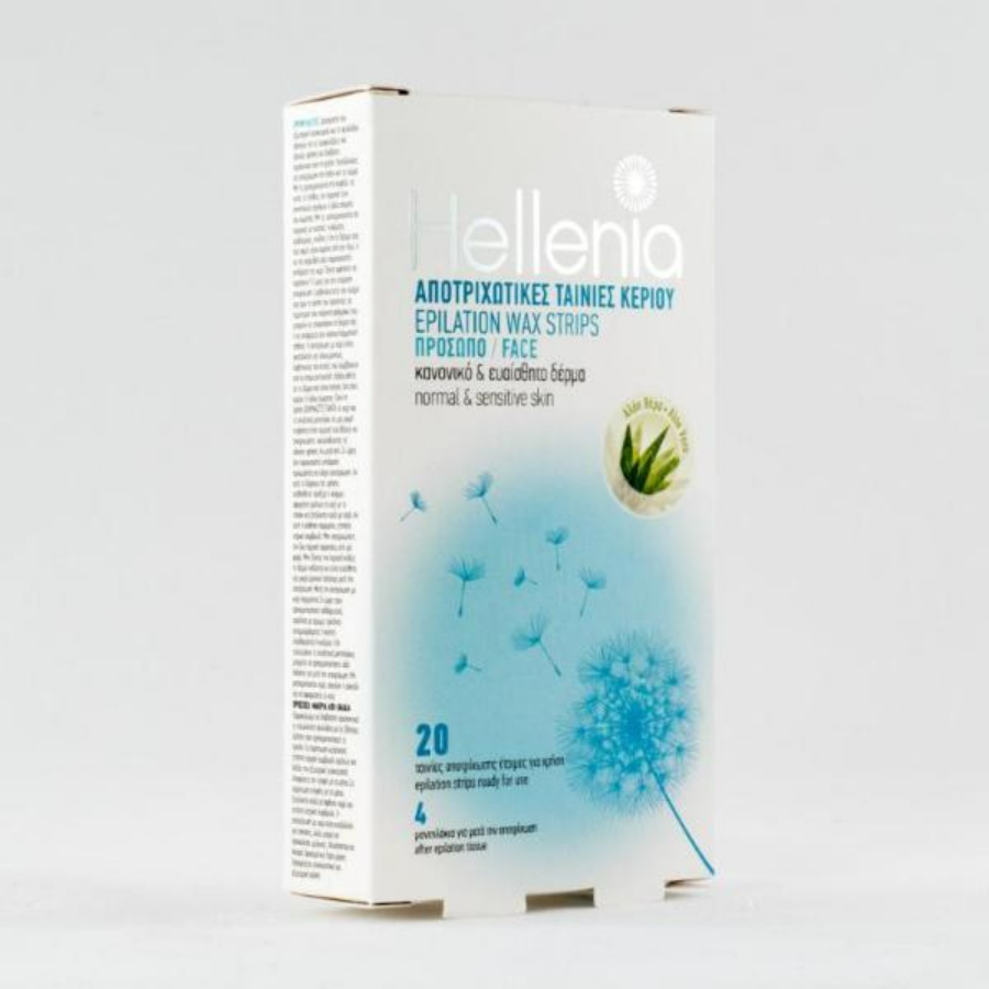 Hellenia Epilation Wax Strips for Face. The package contains 20 strips.