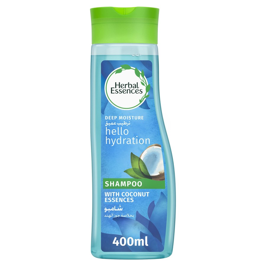 HERBAL ESSENCES SHAMPOO HELLO HYDRATION (400ml x 24) - A deeply hydrating shampoo with coconut water and aloe vera that quenches dry hair leaving it soft and shiny. How to use: Apply to wet hair massage and rinse. Follow with the matching conditioner for best results.