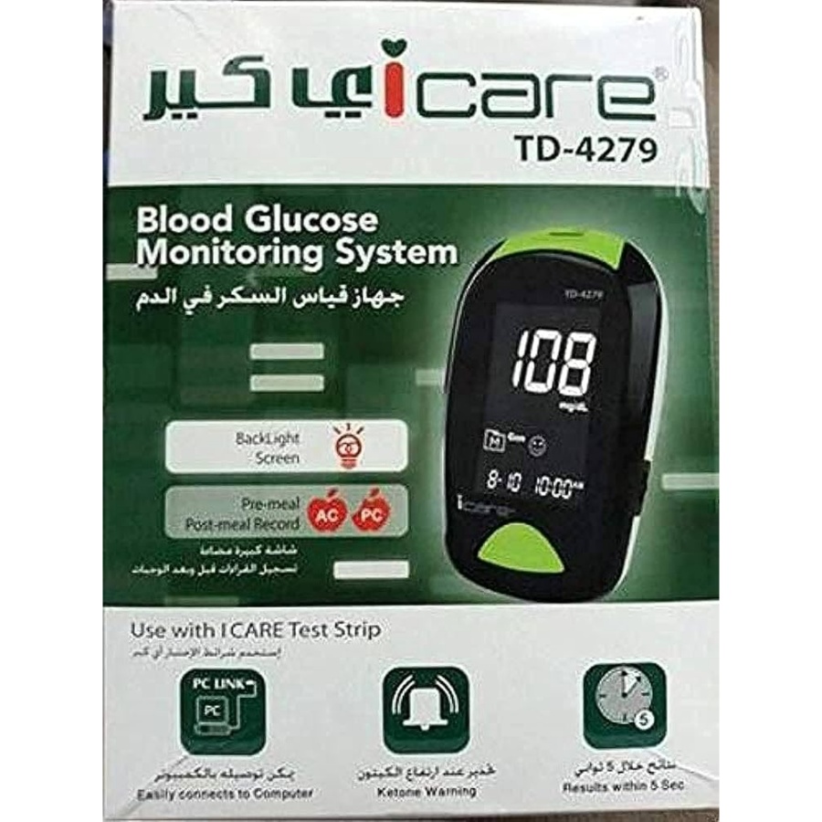 I CARE Blood Glucose Meter + 50 Test Strips: Provides accurate and quick readings for diabetics.