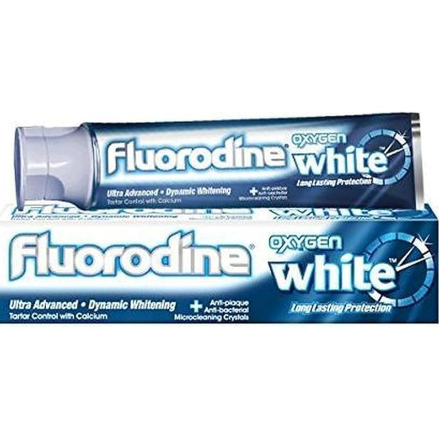 MB. Fluorodine Oxygen White toothpaste helps gently whiten teeth. It is formulated to maintain healthy gums while providing a brighter smile. Available in a 100ml pack for regular use as part of your oral care routine.