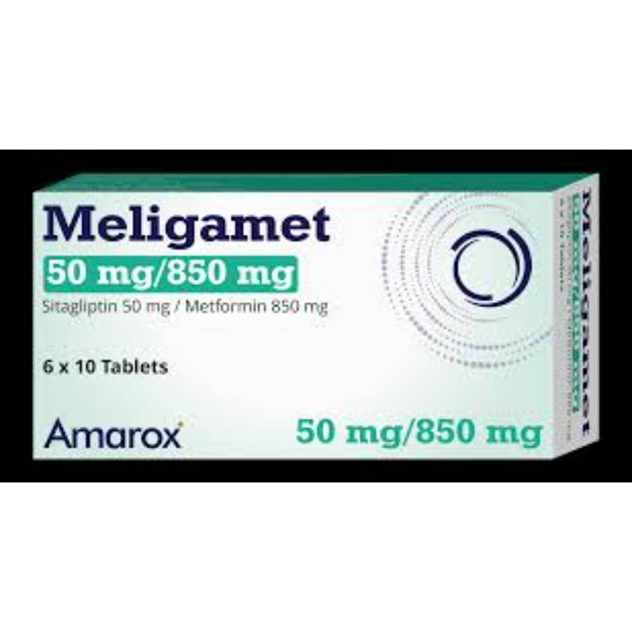 MELIGAMET tablets are available in a 50/850mg strength. This medication is used to manage blood sugar in patients with Type 2 diabetes. It combines two components to improve the body's response to insulin and reduce glucose production and the pack contains 60 tablets.