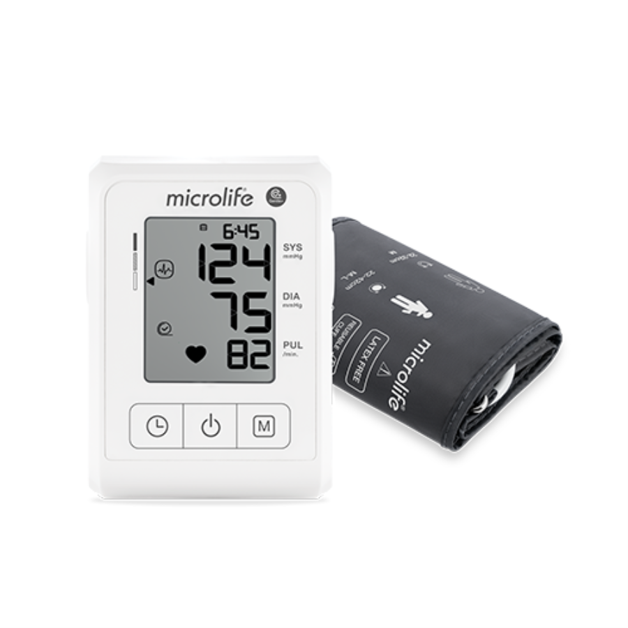 The only way to detect high blood pressure is to accurately measure your blood pressure at home and monitor the readings . Measures systolic and diastolic (upper and lower) blood pressure very accurately . Measures heart rate . It gives an indication in case of irregular heartbeats to detect the defect with the IHB feature. It has a memory that saves the last 30 readings . Guaranteed for 5 years by the Swiss international company Microlife first-class assembly in China with high Swiss quality . Smooth simple fast and very practical to use . It contains the time and date for easy reference to saved readings . Arm measurement from M to L ( from 22 to 42 cm ). It works with 4 x AAA batteries enough to take measurements more than 400 times . The device measures 124 x 92 x 61 mm and weighs 251 g . The device package includes the official warranty from the company (the last page of the catalog is sealed) in addition to the catalog in Arabic and the batteries .