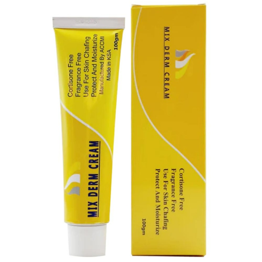 MIX DERM Cream comes in a 100g size. It is a topical cream used to treat various skin conditions. It contains active ingredients that help soothe inflammation relieve itching and regenerate skin cells.