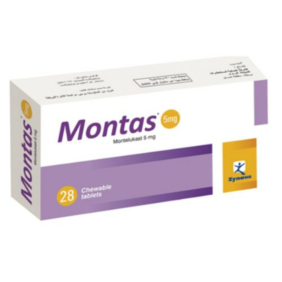 MONTAS 5 mg Chewable tablets 28 tablets (value pack). They are suitable for older children and adolescents for treating asthma and allergies. They provide the same effectiveness in an easy-to-use chewable tablet form.