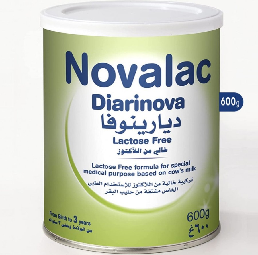 Description: Novalac Diarinova lactose-free milk suitable for babies with diarrhea 600g (6 packs). Benefits: Lactose-free. Easy to digest. Replenishes lost nutrients during diarrhea. Usage Instructions: Mix one level scoop with 30 ml of lukewarm water. Dimensions: 600g pack. Storage: Store in a cool dry place.