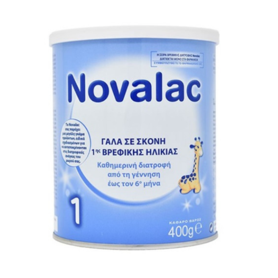 Description: Novalac Stage 1 milk suitable for newborns aged 0-6 months 400g (12 packs). Benefits: Rich in nutrients. Supports healthy growth. Easy to digest. Usage Instructions: Mix one level scoop with 30 ml of lukewarm water. Dimensions: 400g pack. Storage: Store in a cool dry place.