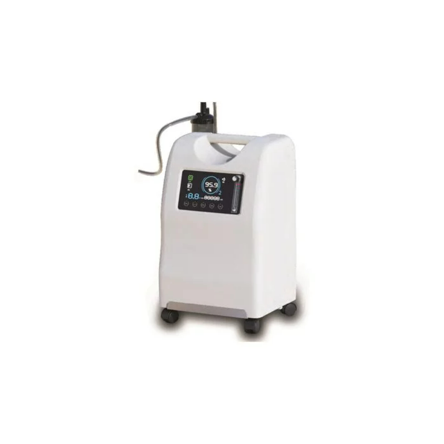 Description Oxygen concentrator for medical use OLV-10 Oxygen concentrator is a single-flow device for obtaining pure oxygen of high concentration from ordinary atmospheric air. It is mainly used for the treatment and prevention of diseases associated with respiratory system disorders. Inhalation of an oxygen-saturated mixture compensates for hypoxia that develops during respiratory failure providing oxygen supply even where there is no central supply or oxygen cylinders. The device is used for both medical and domestic purposes. It is lightweight autonomous moves on wheels and operates from the network. The device is capable of generating from 0.2 to 10 liters of a gas mixture ( OLV-5A up to 5 liters) per minute which consists of 93 % oxygen. The program is set on the large LCD display - session time oxygen-containing gas flow power. There are also voice commands: