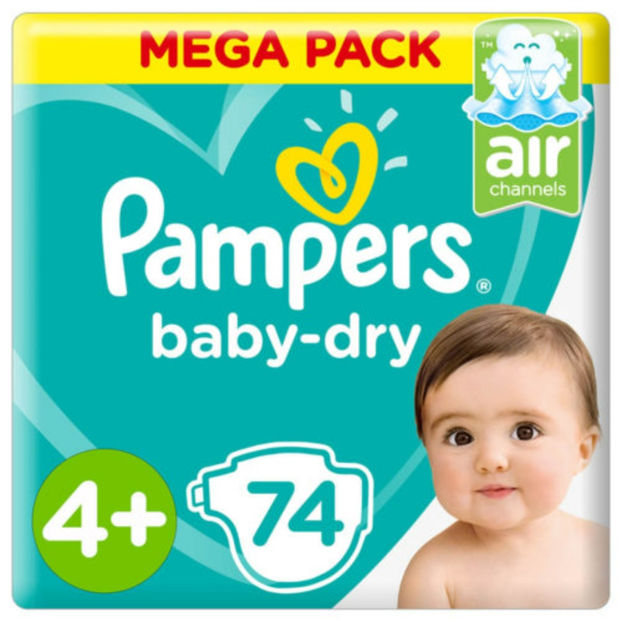 Description: Pampers size Large 4+ in a mega pack suitable for children weighing 9 to 20 kg. The package contains 2 bags each with 74 diapers. Features: Ideal for older children. Provides long-lasting leak protection. Flexible design for extra comfort. Usage: Ensure the diaper is snugly fitted around the child's waist.