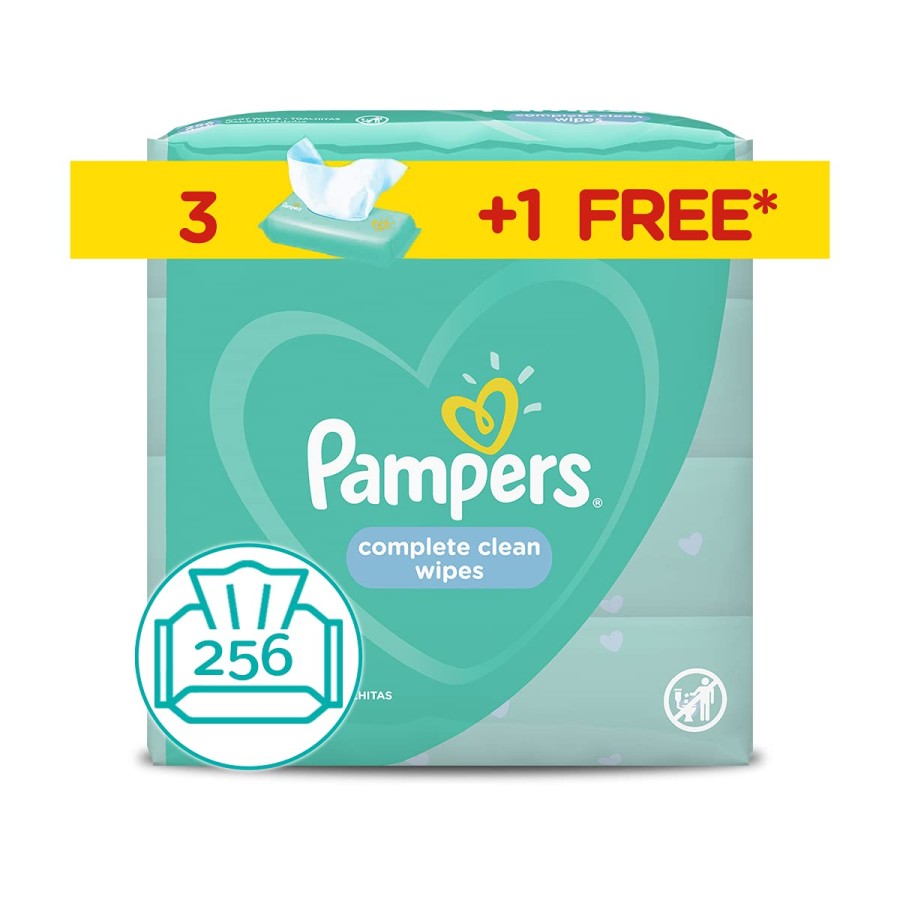 Description: Pampers Complete Clean wipes containing 3 packs each with 3+1 bags each bag containing 64 wipes. Features: Ideal for thorough cleaning. Soft on the baby's skin. Alcohol-free. Usage: Use the wipe to gently clean the baby's skin.