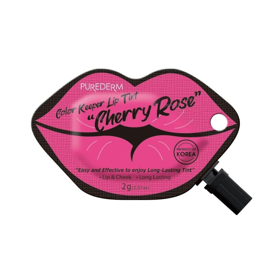 Definition: Lip tint by Purederm in shade Cherry Rose. Ingredients: Contains coloring and moisturizing ingredients. Usage: Apply to lips. Benefits: Provides natural color and hydrates lips.
