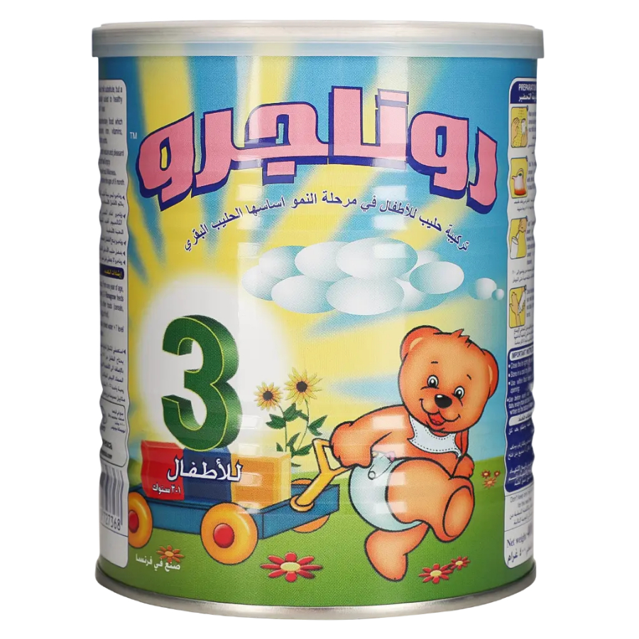 Description: RONAGROW Baby Milk No. 3 is a specialized milk for children aged 1 to 3 years. It contains complete nutrients that support mental and physical growth. Benefits: Supports mental and physical development. Rich in essential vitamins and minerals. Easy to digest and suitable for toddlers. Boosts the immune system. How to Use: Boil water and let it cool to 40°C. Add the recommended amount of milk powder to the water based on the child's age. Shake the bottle well until the milk is fully dissolved. Check the temperature before feeding. Nutritional Content: Protein calcium vitamins (A D E K) omega-3 and dietary fiber.