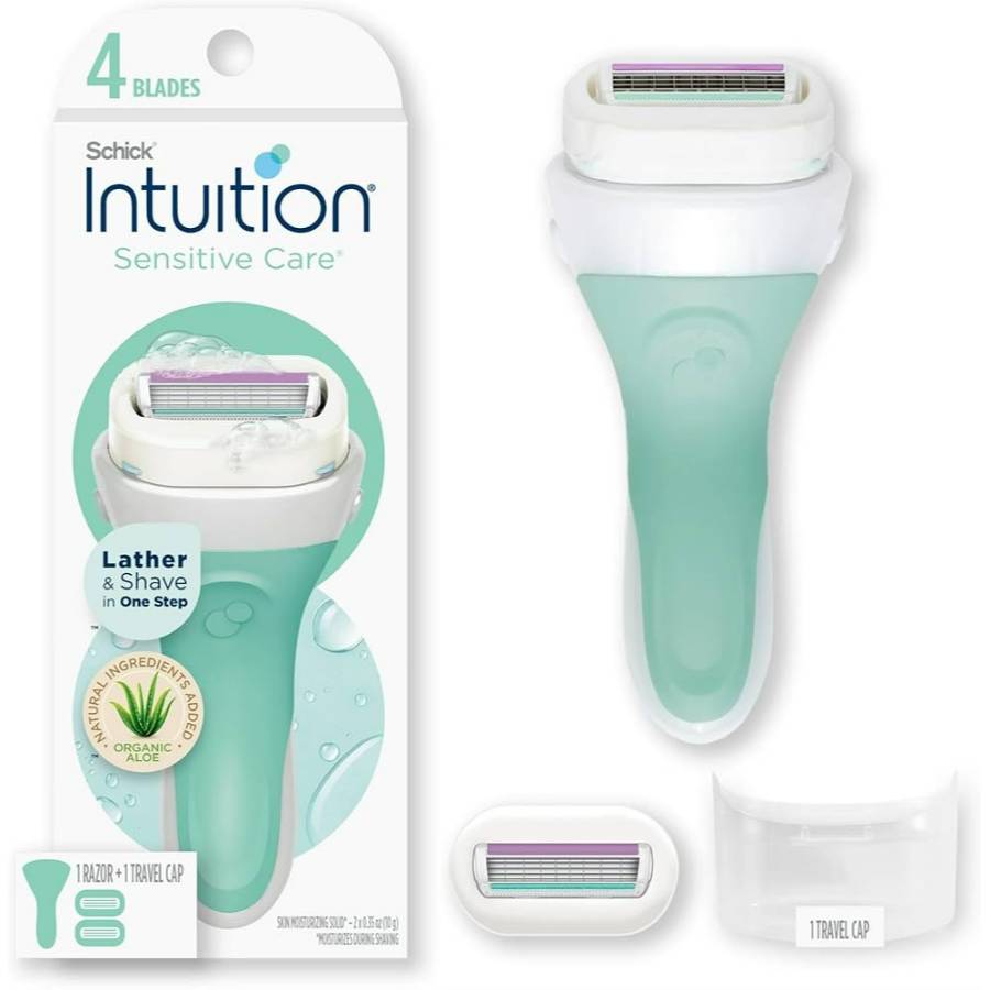 Shake Intuition for Sensitive Skin with Green Tea Extract is a razor designed with a built-in moisturizing strip enriched with green tea extract to help soothe the skin during shaving. It provides a smooth and gentle shave suitable for sensitive skin and reduces irritation.