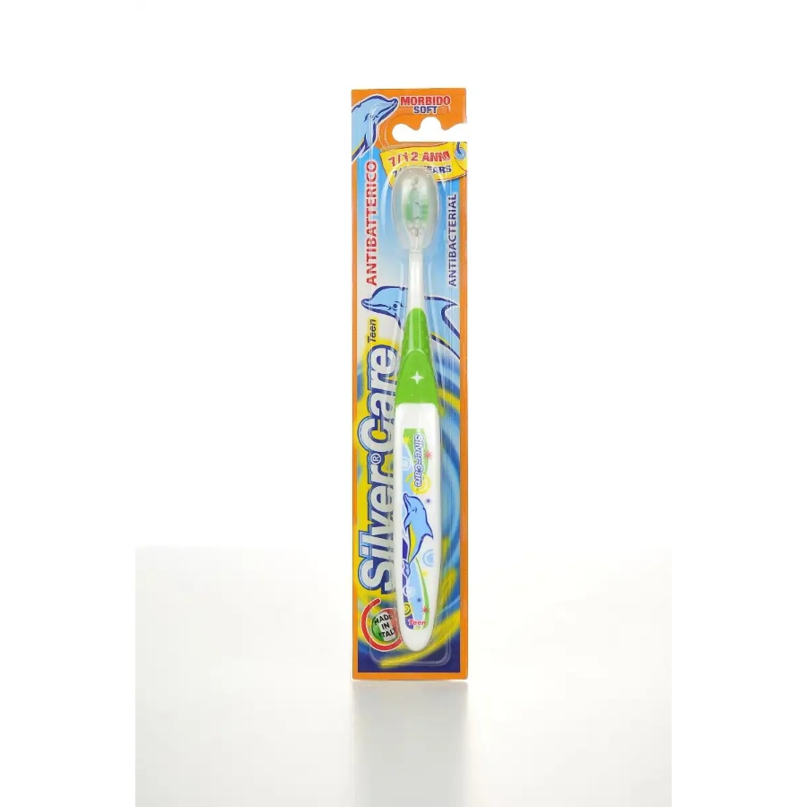 Silver Care kids' toothbrush (3-6 years) with soft silver-treated bristles for gentle cleaning and antibacterial protection.