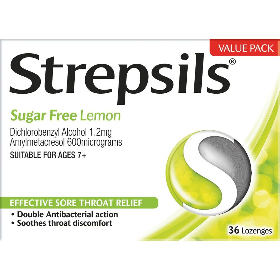 Strepsils Lemon Sugar Free 36 Tablets to relieve sore throat and difficulty swallowing