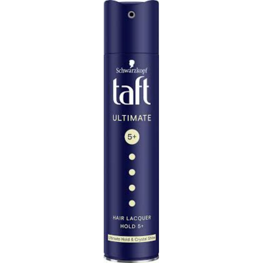 Description: Taft Ultimate Hair Spray Lacquer Hold 5+ is designed to provide maximum hold for hair. How to Use: Spray an adequate amount on hair from a distance of 20 cm. Benefits: - Provides maximum hold all day. - Enhances hair shine. - Suitable for all hair types.