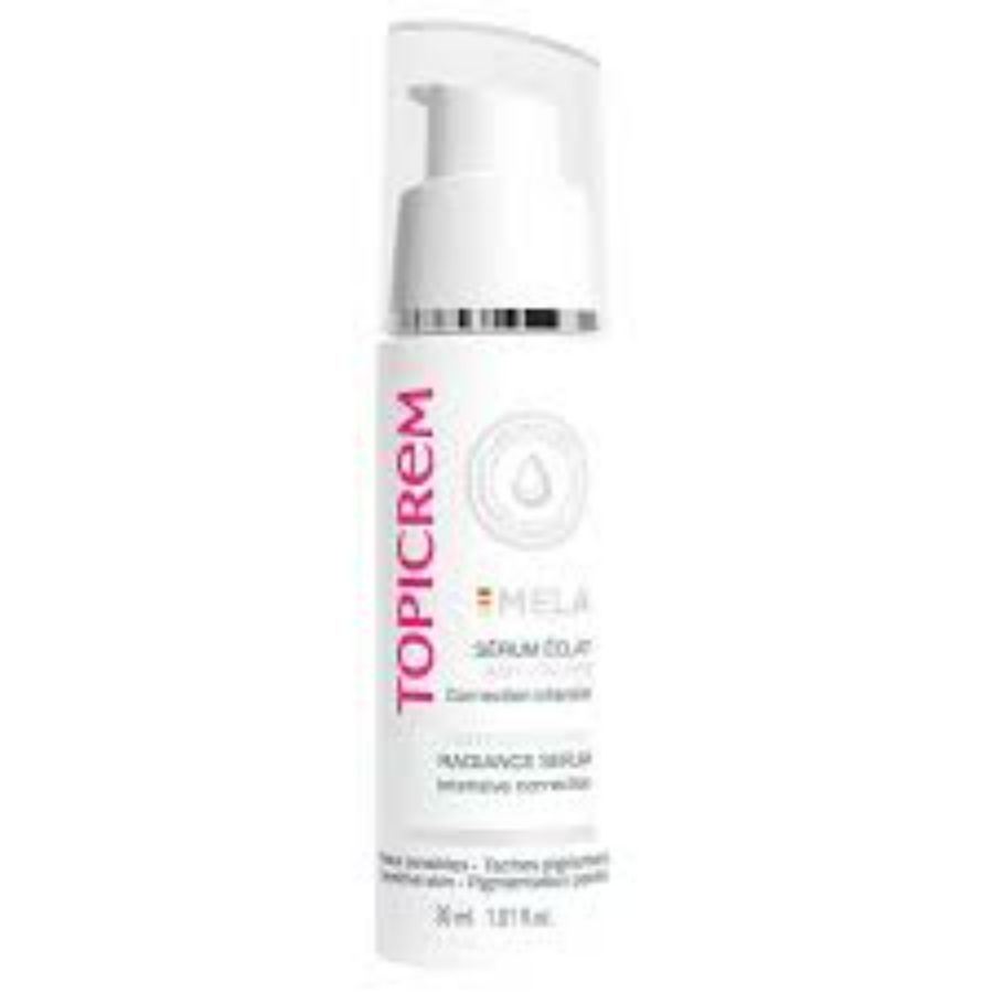 Product Description: Topicrem Mela Booster Serum for skin brightening. How to Use: Apply the serum to clean skin daily. Benefits: - Brightens skin tone. - Reduces dark spots.
