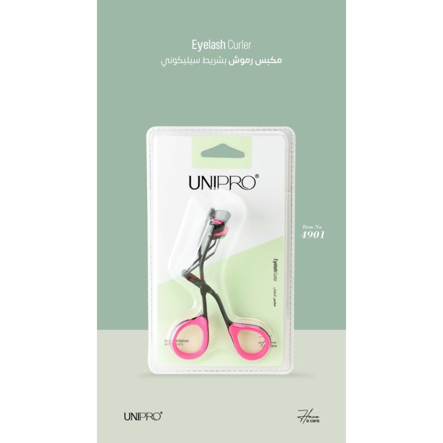 A high-quality eyelash curler by Unipro designed to curl lashes easily and painlessly. It helps achieve curled and attractive lashes that last all day. Suitable for daily use or special occasions. How to use: Gently press on lashes for 5-10 seconds.