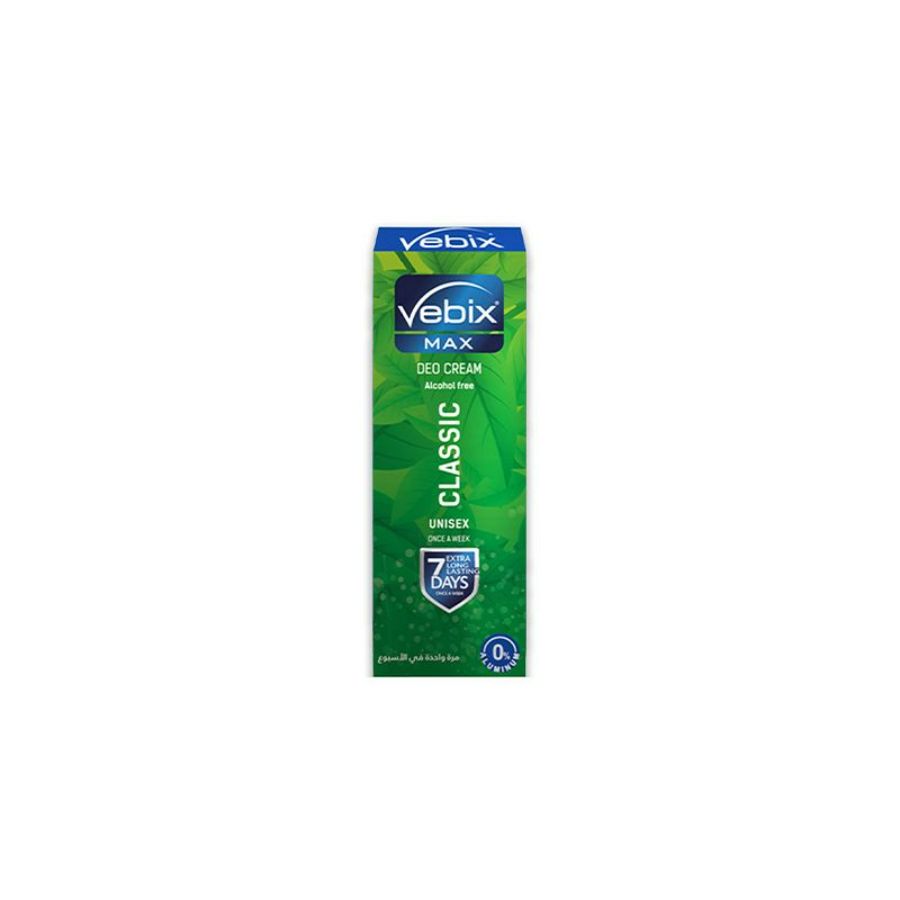 Vebix Classic Deodorant Cream 25ml provides effective and long-lasting protection against sweat and odor with its unique formula free from aluminum and harmful chemicals. It combats odor-causing bacteria without clogging pores allowing the skin to breathe naturally. Its creamy fast-absorbing texture ensures a refreshing feeling that lasts up to 7 days even with frequent showers making it an ideal choice for daily care of sensitive skin.