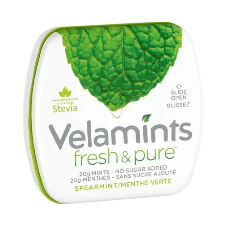 Velamints Fresh Sugar-Free Mints in Spearmint flavor deliver long-lasting freshness with a smooth and refreshing mint taste. Sweetened with Truvia and completely sugar-free they offer a healthy way to keep your breath fresh anytime. Each stylish tin contains 28 mints making them ideal for on-the-go use.