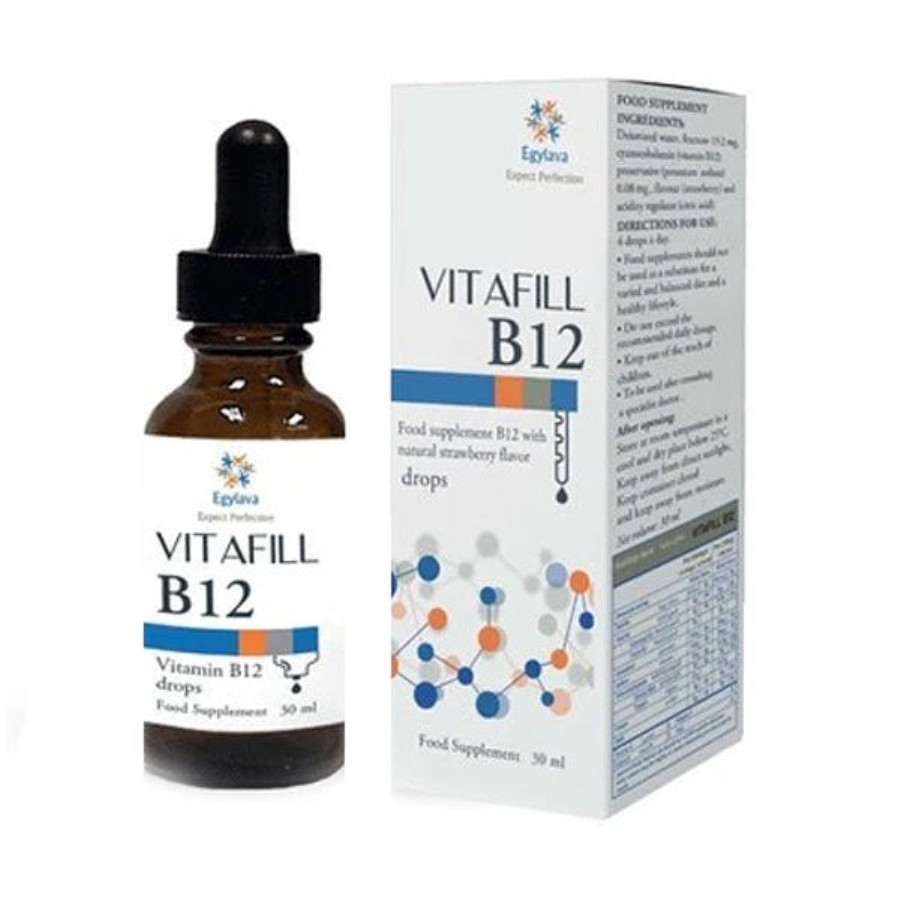Description: Liquid vitamin B12 supplement Benefits: Supports energy production and nervous system Usage: 1ml (approx. 20 drops) daily Key Ingredients: Cyanocobalamin (Vitamin B12)